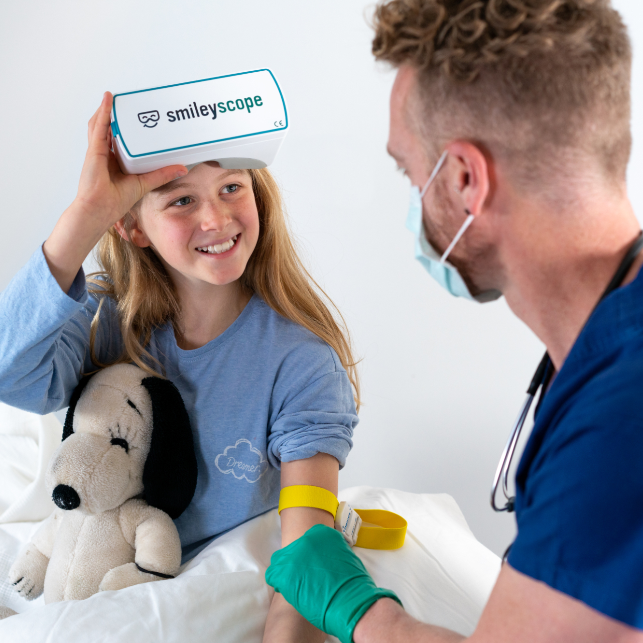 Smileyscope was initially developed for needle procedures (IV insertions, blood draws, vaccinations, port access) and has the strongest clinical evidence in this area. It's now successfully used across broader paediatric care including pre-surgical preparation, MRI/CT scans, wound care, burns dressings, suturing, lumbar punctures, and breathing treatments such as nebulised and inhaled medications.